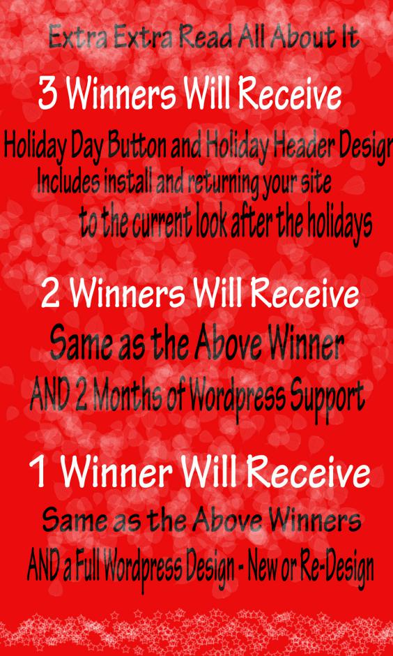 3 Lucky Winners will receive a new Holiday Header and/or Holiday Button for their use. Ask This Tech will even put the logo up for you and if you need her to return your site to the way it looks now when the holidays are over, that can be done too!