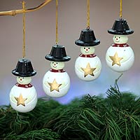 I continued on moseying throughout the site – I wanted to see more.  I came upon snowmen.  I collect snowmen and love the ones that display a country air.  My eyes laid upon this set of four wooden snowmen ornaments.  Aye yup, my name was written all over them and I knew I had to have them too.