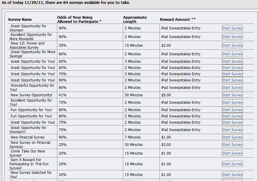 Only Cash Surveys is for those who like cash rewards. They offer a $5 bonus upon sign-up. I receive quite a few emails from them – some being fairly well paying and some not – depending on the length of the survey. The real short surveys don’t pay cash, but rather an entry into their sweepstakes.
